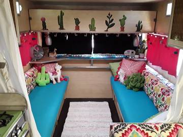 Hill country vintage glamping Christian themed campers. Free tube rental.The space features two 1970's Shasta boho style vintage campers with a beautiful surrounding garden. We are situated in South Canyon Lake, known for it's crystal blue water lake and tubing on the nearby Guadalupe river. Watch a concert at nearby Whitewater amphitheater. You will have access to two unique vintage shasta campers, a beautiful lighted garden tiki area with chimeneas, and a prayer hiking trail with mountain views. The spaceThis listing is for both campersThe cactus camper has a dinette and two couches that ...
