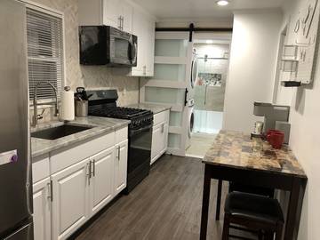 Welcome to our 2 bedroom guest house in the center of Watertown! The property sits on a 7 acre estate designed by Olmsted and Sons. The lovingly renovated original guesthouse offers 2 large bedrooms with queen size beds, a comfortable living room with a Murphy bed and a working fireplace with access to a covered outdoor dining area surrounded by a private backyard. There is a campfire area and additional outdoor seating. The property is surrounded by a stately stone wall and magnificent towering evergreen trees. The guesthouse also has a fenced-in backyard suitable for an apartment size pet...