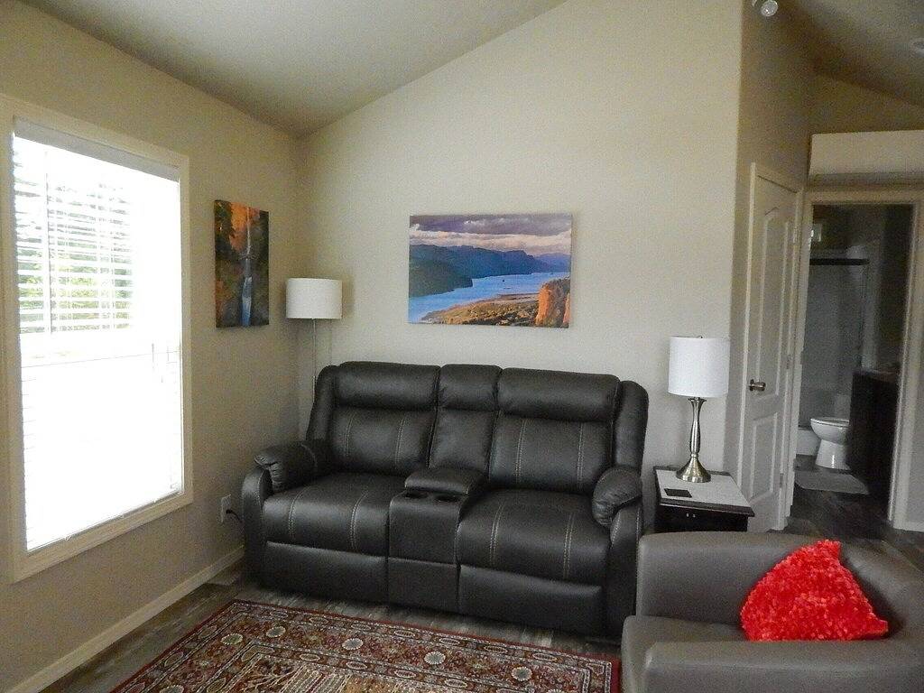 Mt. Baker Rim Cabin #44 - A Cozy Rustic Cabin with Modern Charm, Now with WIFI and a Portable A/C Unit! This cozy 2-story 2+ bedroom 2-bath cedar cabin has everything that you need...and then some! The 1st floor features an open living/dining area with a wood burning fireplace (firewood provided), a fully equipped kitchen, one bedroom with 2-sets of bunk beds, a laundry cubby with a stack washer/dryer, and a 1/2-bath. The 2nd floor features one bedroom with 1 double bed, an open loft sleeping area with a Hide-a-bed, and a 3/4-bath. Right outside the back French doors is a nice deck with a g...