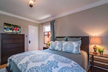 Amazing CA style bungalow that is gorgeous, well done, impeccably clean and an amazing covered front porch for just relaxing and people watching. Hardwood floors, fabulous furniture, including a completely stocked kitchen and formal dining area and fireplace. The bathroom includes a fabulous soaking tub with bath salts just awaiting your arrival.There are 2 Units each having -1bed/1bath . Located 1.5 blocks west of State Street, x-street Chapala. *Modern, quiet and Safe*Fabulous double pillow top queen bed with high quality linens & pillows*Fluffy Cozy Robes and Slippers*Hardwood Floors...
