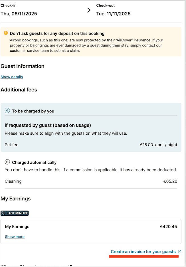 - Under My Earnings, click Create an invoice for your guests.