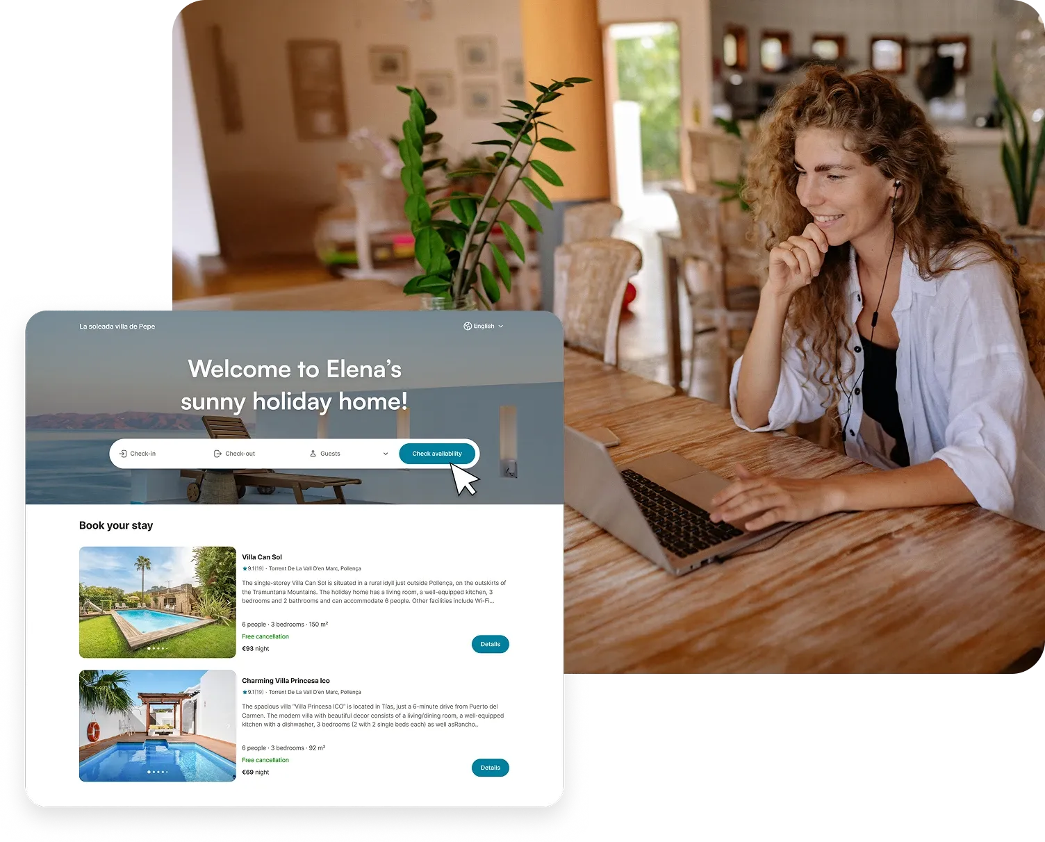 Create your own professional booking website in minutes. Keep more of your earnings, enhance direct bookings with secure checkout, and enjoy calendars that stay perfectly in sync – no coding required.